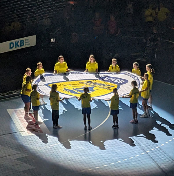 Mit strahlenden Augen und voller Stolz durften sie als Banner-Mädchen bei den Rhein-Neckar Löwen auf der Platte stehen – ein Moment, den sie so schnell nicht vergessen werden.